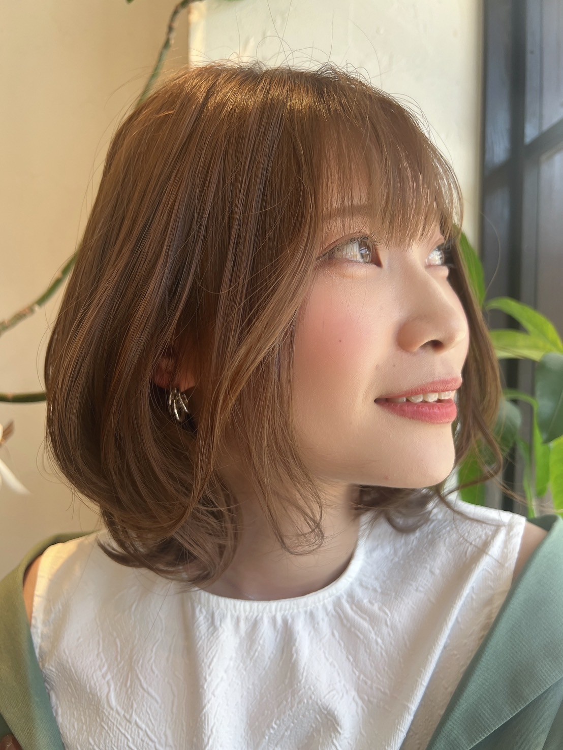 ボブから伸ばし中のお客様を表面と顔周りに重めのレイヤーを入れる事で動きやすい質感が作れます。