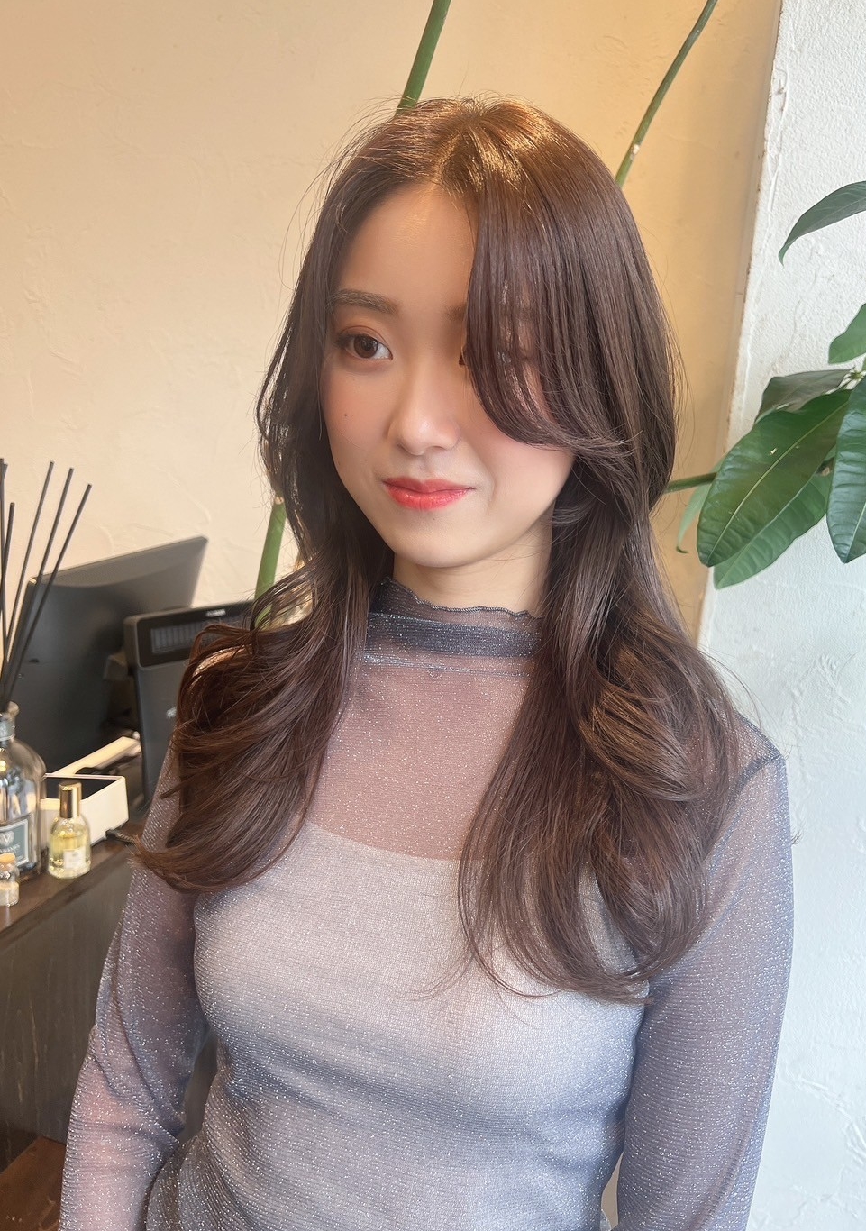 韓国系の要素もありつつ作り過ぎないナチュラルな雰囲気が良い感じのヘアスタイルです。